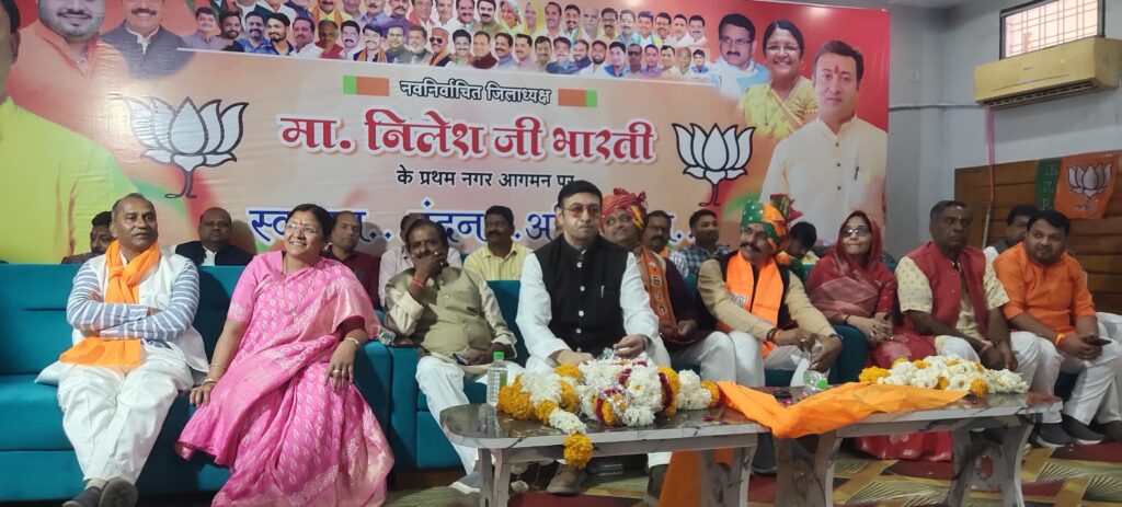 निलेश भारती ने कहा कि छोटे से छोटे कार्यकर्ताओं को आगे बढ़ाने वाली भाजपा पार्टी है भाजपा कार्य पद्धति से भाजपा को विश्व में नंबर वन बनाया और यह संभव देश के यशस्वी प्रधानमंत्री नरेंद्र मोदी जी के नेतृत्व में हुआ। भाजपा के हर एक कार्यकर्ताओं को जिला संगठन में मान सम्मान और कार्य मिलेगा हर काम के लिए एक कार्यकर्ता होगा। भाजपा के सामान्य कार्यकर्ता को जिले के अध्यक्ष पद पर मौका देना यह सिर्फ भाजपा में संभव है।