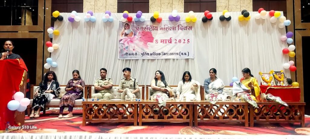 अंतर्राष्ट्रीय महिला दिवस के अवसर पर रतलाम पुलिस अधीक्षक की पहल पर विशेष कार्यक्रम श्रीजी पैलेस में आयोजित किया गया, जिसमें महिला पुलिस अधिकारीयो एवं कर्मचारियों के समर्पण और कर्तव्यनिष्ठा की सराहना की गई। कार्यक्रम में पुलिस अधीक्षक श्री अमित कुमार अपनी पत्नी डॉ स्वर्णा सरस्वती, अतिरिक्त पुलिस अधीक्षक रतलाम श्री राकेश खाखा अपनी पत्नी श्री मति तबस्सुम खाखा के साथ सम्मिलित हुए। कार्यक्रम में डॉ स्मिता शर्मा ( ब्रेस्ट कैंसर स्पेशलिस्ट) एवं डॉ अर्चना शर्मा (ENT स्पेशलिस्ट) द्वारा विशेष अतिथि के रूप में सम्मिलित होकर महिला अधिकारियों एवं कर्मचारियों को स्वास्थ्य संबंधी जागरूकता प्रदान की गई।