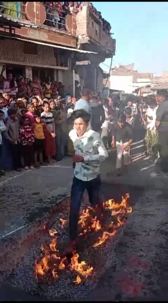 धधकते अंगारों पर चलकर श्रद्धालु पहुंचे मंदिर
