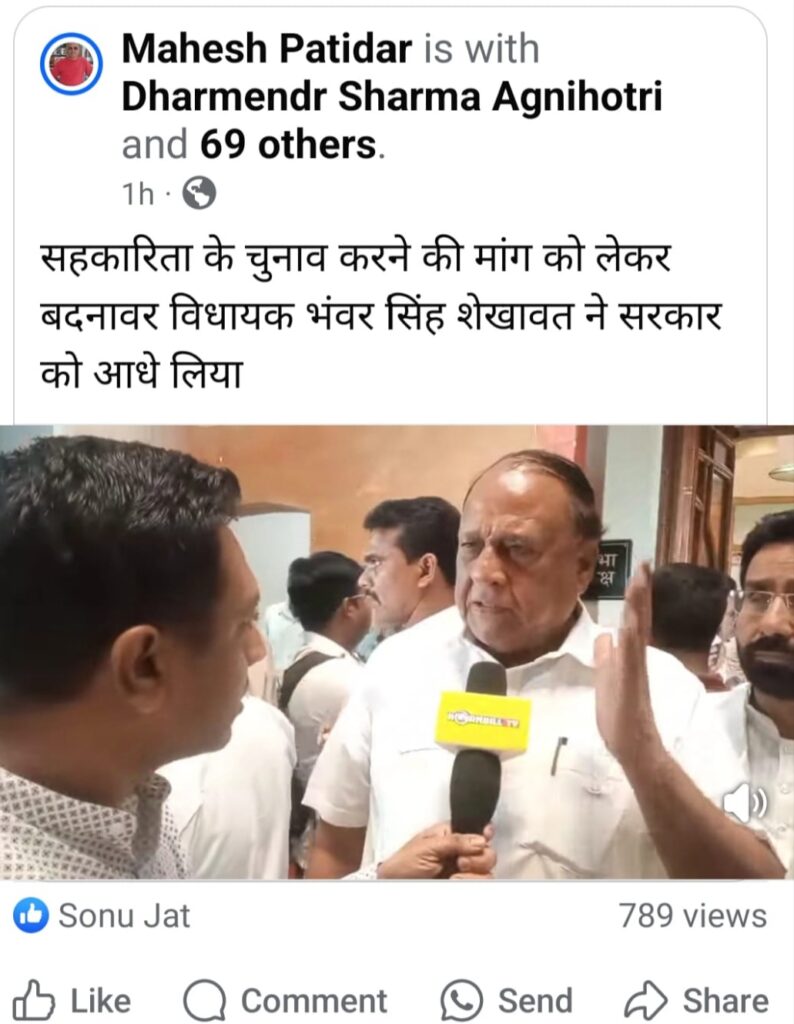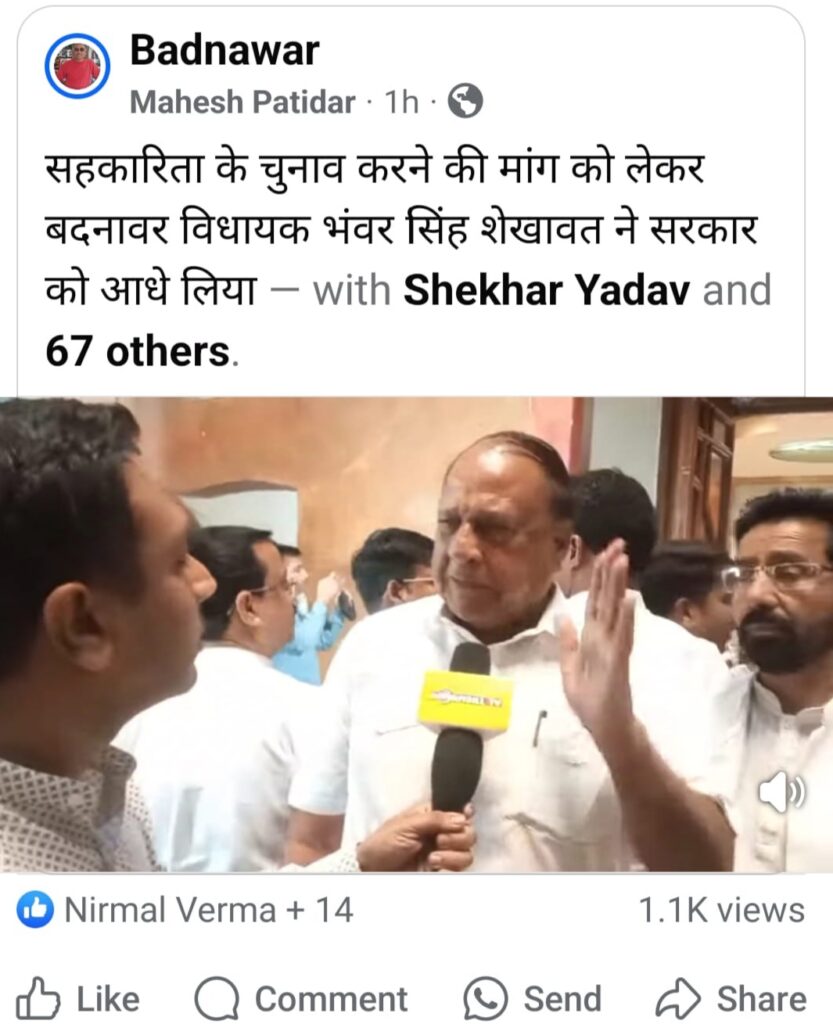 सहकारिता चुनाव कराने की मांग को लेकर बदनावर विधायक भंवर सिंह शेखावत ने सरकार को घेरा- खबर पड़े नीबू मिर्च पर