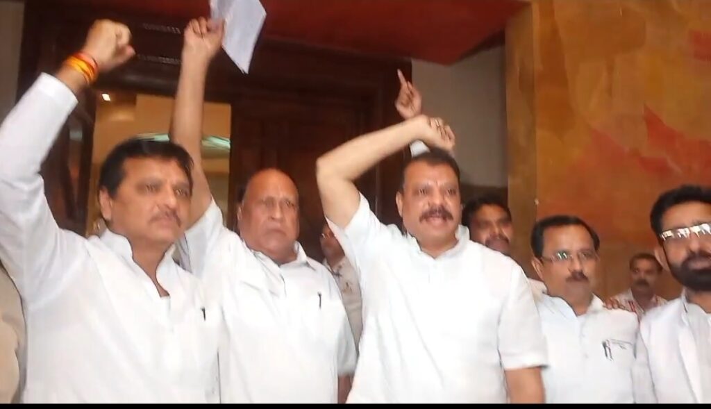 नेता प्रतिपक्ष उमंग सिंघार के नेतृत्व में कांगेस विधायकों ने सहकारिता चुनाव ज्लद कराने की मांग सदन में उठायी