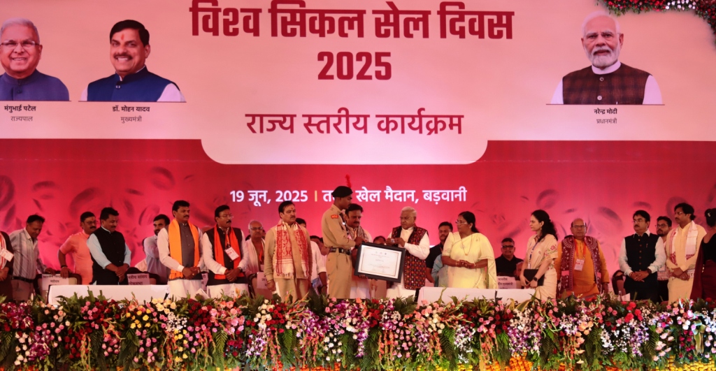 महामहिम राज्यपाल श्री मंगूभाई पटेल ने विश्व सिकलसेल दिवस के अवसर पर आयोजित कार्यक्रम में 3 सिकल मित्रों को सम्मानित करते हुए सिकल मित्र योजना का शुभारंभ किया। इस दौरान राज्यपाल जी ने सेंधवा के श्री लक्ष्य जगताप, धार की अर्पिता जोशी एवं डिंडोरी के श्री शारदा प्रसाद सिकल मित्रों को सम्मानित करते हुए योजना का शुभारंभ किया। बनाये गये सिकल मित्र ग्राम-ग्राम जाकर लोगों को बीमारी के प्रति जागरूक करते हुए उनकी स्क्रीनिंग एवं उपचार में सहयोग करेंगे।