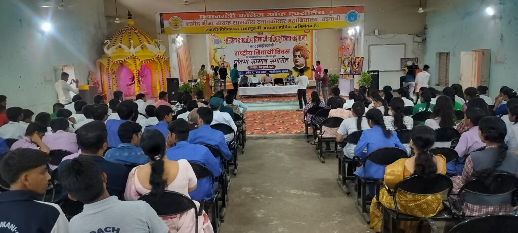 बड़वानी (नरेन्द्र गुप्ता )-पीएम श्री कॉलेज ऑफ एक्सीलेंस, शहीद भीमा नायक शासकीय महाविद्यालय, बड़वानी में अखिल भारतीय विद्यार्थी परिषद का स्थापना दिवस समारोह गरिमामय वातावरण में आयोजित किया गया। इस अवसर पर कक्षा 10वीं एवं 12वीं में 70% से अधिक अंक प्राप्त करने वाले मेधावी विद्यार्थियों का सम्मान समारोह संपन्न हुआ।मुख्य अतिथि के रूप में उपस्थित बड़वानी के पुलिस अधीक्षक जगदीश डावर द्वारा विद्यार्थियों को प्रशस्ति पत्र एवं शील्ड प्रदान कर सम्मानित किया गया।