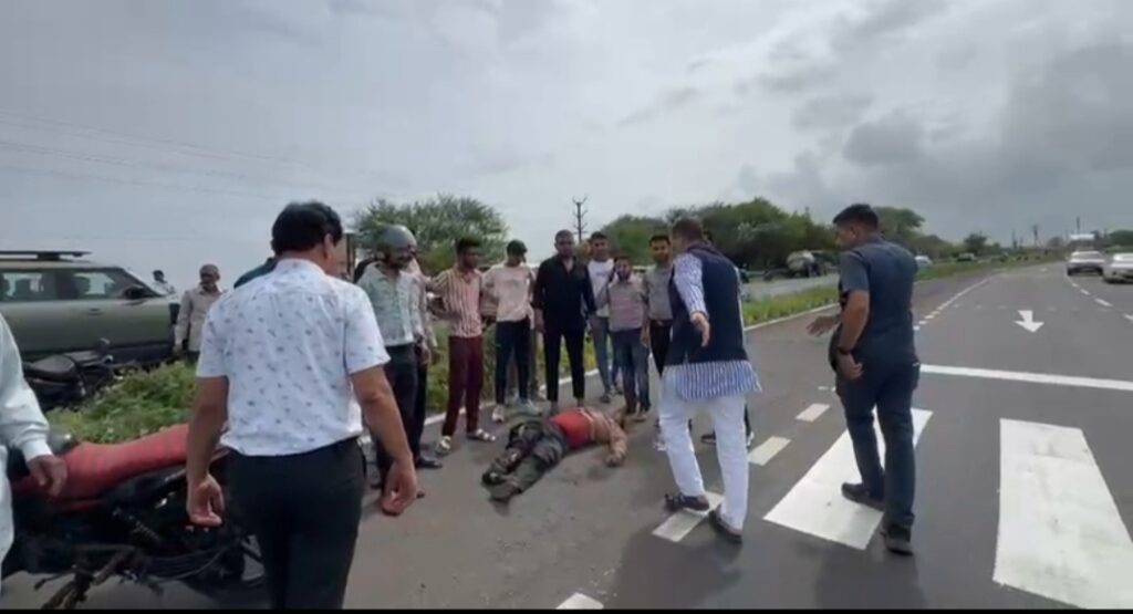 जीतू पटवारी इंदौर में जब धार रोड से गुजर रहे थे, तभी सड़क किनारे दुर्घटना में एक घायल किसान दिखाई दिया।