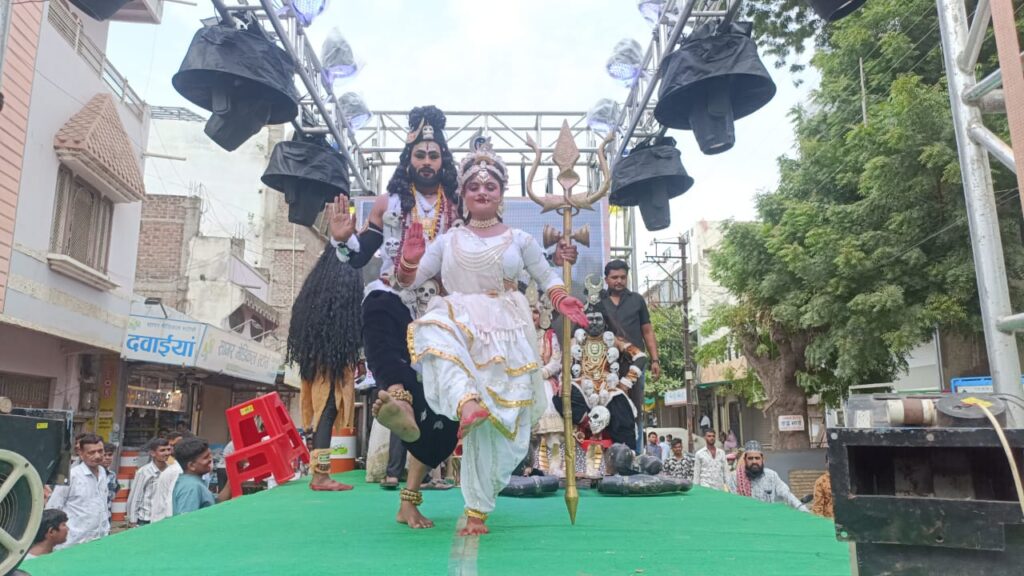 हर हर महादेव ग्रुप की और से रतलाम की महाकाली एवं राजस्थानी नृत्यदल, सराफा एसोसिएशन की और से बाग-जोबट का प्रसिद्ध आदिवासी लोक नृत्यदल, ॐ मंगलम मित्र मण्डल की और से मंदसौर के शेषनाग, राधाकृष्ण एवं शिव पार्वती नृत्यदल, जटाधारी ग्रुप की और से मण्डवाड़ी लोक नृत्य, सनातन ग्रुप द्वारा बड़वानी के छावां मूवी सीन नृत्य जिसमे कलाकारो द्वारा प्रसिद्ध छावां फ़िल्म के मुख्य अंशो को नृत्य द्वारा दर्शाया गया तथा शिव डोला समिति की और से राजस्थानी नृत्यदल के कलाकारो ने अपनी रंगारंग देते हुए सब का मन मोह लिया।