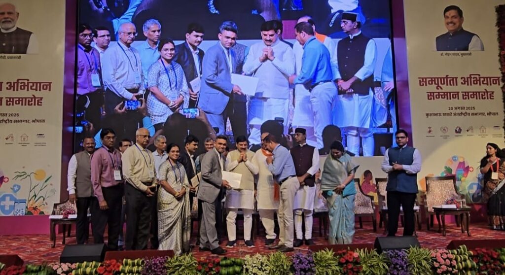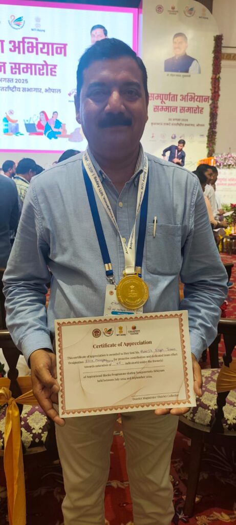 धार .। मध्य प्रदेश के तिरला विकासखंड में चल रहे आकांक्षी विकासखंड के संपूर्णता अभियान अंतर्गत भोपाल के कुशाभाव ठाकरे कन्वेंशन सेंटर में कार्यक्रम आयोजित किया गया जिसमें प्रदेश के मुख्यमंत्री श्री मोहन जी यादव द्वारा जिला धार विकासखंड तिरला अन्तर्गत म.प्र. राज्य ग्रामीण आजीविका मिशन के विकासखंड प्रबंधक राकेश सिंह तोमर को सेच्यूरेटेड इन्डीकेटर एनआरएलएम के अतंर्गत विकासखंड तिरला द्वारा उत्कृष्ट कार्य करने पर सम्मानित किया गया।