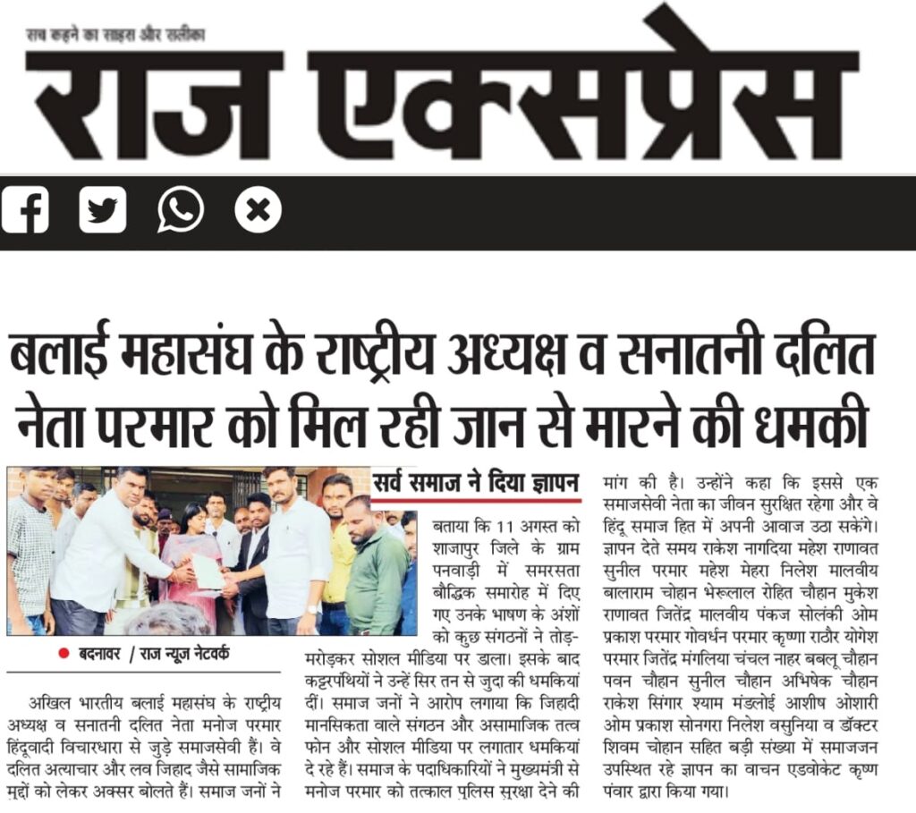 आगे उन्होंने कहा कि, मै इस बयान का पुर जोर तरीके से विरोध करता हूं और उमंग सिंघार जिस तरह से आदिवासी समाज को बरगलाने व बहकाने का काम कर रहे है आदिवासी समाज इसको जान चुका है की कांग्रेस पार्टी वोट बैंक की राजनीति करती है और सनातन हिन्दू समाज मे फुट डालने का षड्यंत्र रच रही है जिसका आदिवासी समाज पुरजोर तरीके से जवाब देगा।