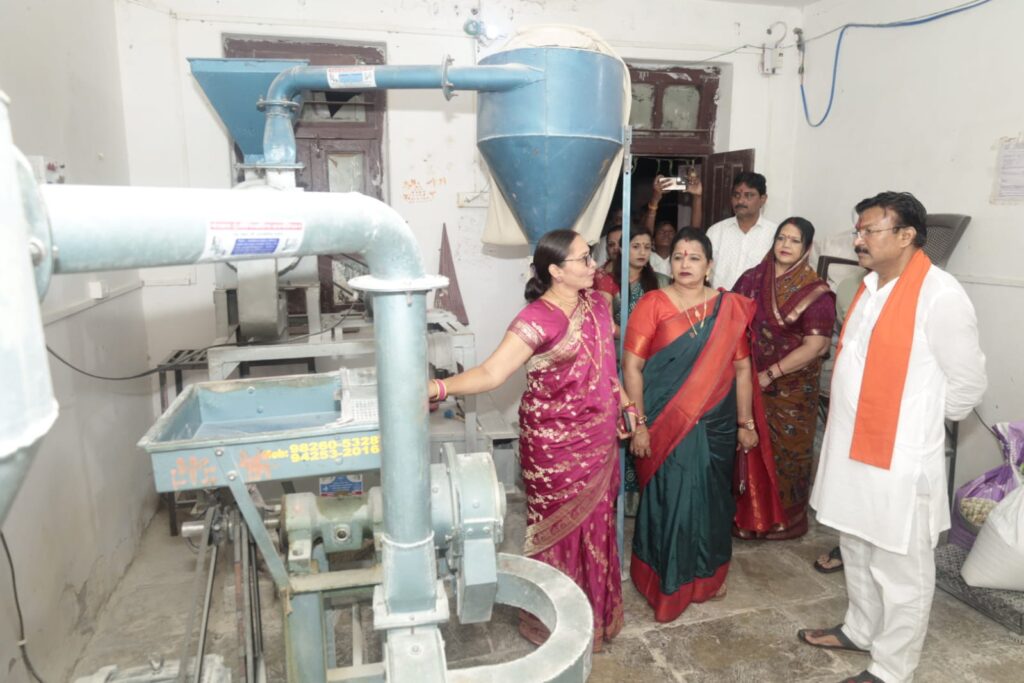 सांसद पटेल ने श्री गणेश आजीविका मिशन सिलाई सेंटर का भी निरीक्षण किया। यहाँ स्व-सहायता समूह की दीदियों द्वारा प्रतिदिन किए जा रहे सिलाई कार्य के साथ ही पापड़, दलिया, बड़ी और मसालों के उत्पादन को देखकर उन्होंने गहन संतोष व्यक्त किया। सांसद ने कहा दीदियाँ आत्मनिर्भरता की जीवंत मिसाल हैं। प्रधानमंत्री श्री नरेंद्र मोदी जी के आत्मनिर्भर भारत के संकल्प को इनके प्रयासों से साकार होते देखना प्रेरणादायक है।