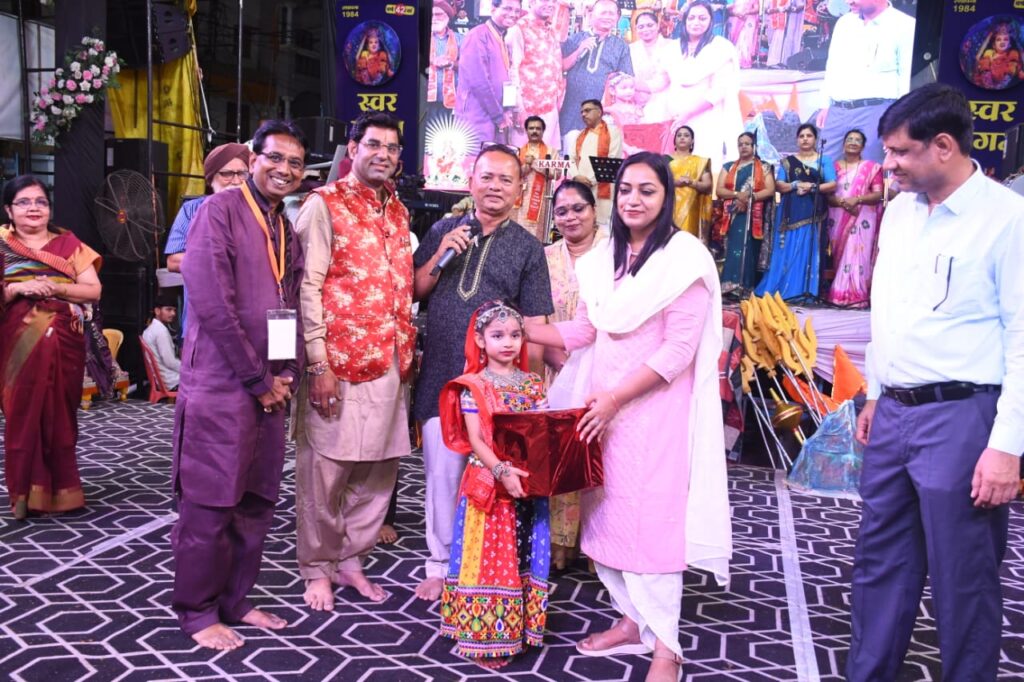 बडवानी( नरेन्द्र गुप्ता) / मंगलवार रात्रि में रणजीत चौक बडवानी में आयोजित स्वर संगम गरबा महोत्सव की मुख्य अतिथि जिला कलेक्टर श्रीमती जयति सिंह ने माताजी की महाआरती बच्चो के साथ की। आरती पश्चात कलेक्टर का स्वागत सामाजिक कार्यकर्ता श्रीमती नीना जैन, मंडल अध्यक्ष जितेंद्र जैन, कार्यकारी अध्यक्ष सचिन शर्मा, संरक्षक गुरमीत सिंह गांधी ने किया।