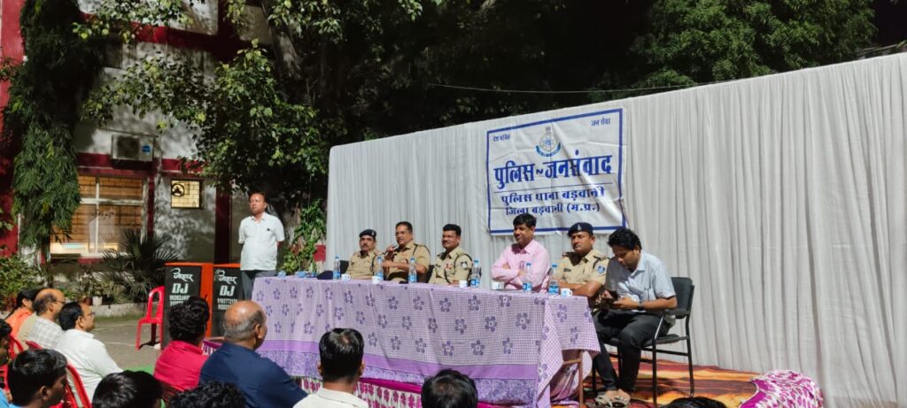 *जनसंवाद में बड़वानी एएसपी धीरज बब्बर, एसडीओपी दिनेशसिंह चौहान, तहसीलदार हितेंद्र भावसार, थाना प्रभारी कोतवाली दिनेशसिंह कुशवाह, विद्युत विभाग सहायक यंत्री जे.आर. गंगारे, यातायात थाना प्रभारी विनोदसिंह बघेल, थाना स्टाफ सहित अधिकारी, पत्रकार बंधु, व्यापारी, जनप्रतिनिधि, नगर सुरक्षा समिति सदस्य और नागरिक उपस्थित रहे।