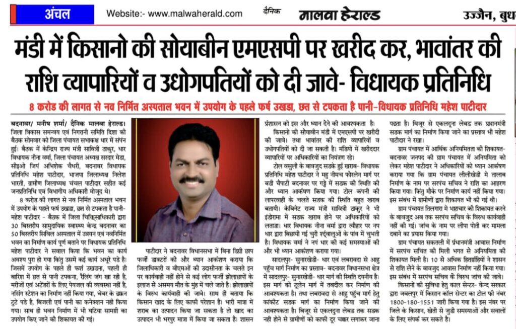 इस दौरान पूर्व सांसद सुभाष पटेल, जिप अध्यक्ष बलवन्त सिंह पटेल, पूर्व जिला अध्यक्ष ओमप्रकाश खंडेलवाल व ओमप्रकाश सोनी, भगवती प्रसाद शिंदे व विनोद वसावे मंचासीन रहे।