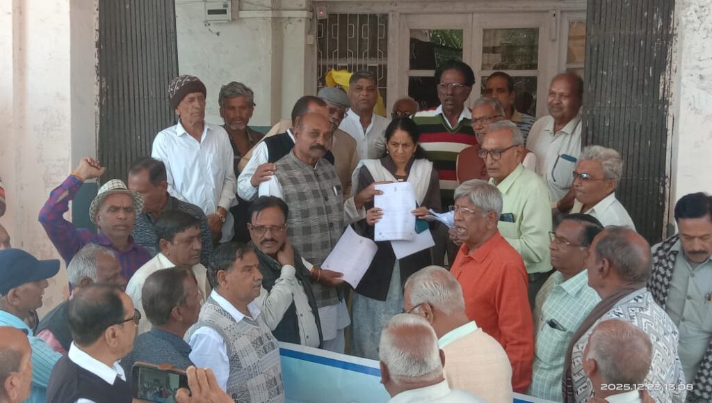 सादलपुर। धार कलेक्ट्रेट परिसर पर संयुक्त पेंशनर एसोसिएशन जिला धार के तत्वावधान में सैकड़ों पेंशनर की उपस्थिति में संगठन के माग पत्र के साथ माननीय महिला एवं बाल विकास मंत्री महोदया श्रीमती सावित्री जी ठाकुर के लेटर पैड पर मुख्यमंत्री महोदय को सम्बोधित करते हुए धार कलेक्ट्रेट के अधिकारी महोदया को सादलपुर मण्डल के जो ग्राम पहले बदनावर माइक्रो सिंचाई परियोजना वंचित रह गये ग्राम सादलपुर,बिजूर,केसूर,हरसोरा, मांचकदा, खिलेड़ी बोदवाड़ा खुर्द, गोविन्द पुरा, गवला, रामपुर, बालोदा, भिड़ोता, जुहावदा, संगेसरा, अन्तराय, मुसावदा, खेरोद, बगड़ी ताज, चोकीसेवरा, बड़ोदिया, अकोलिया, मोलानी,आदि ग्रामों को धार माइक्रो नर्मदा सिंचाई परियोजना में शामिल कर ने की अनुशंसा पत्र पतंजलि योग समिति जिला प्रभारी रामभरोसे वर्मा द्वारा सौंपा गया वहीं इसी पत्र की कापी माननीय मुख्यमंत्री महोदय को हेलीपेड पर विद्युत मण्डल पेंशनर एसोसिएशन जिलाध्यक्ष त्रिलोकचंद पटेल,चम्पालाल पाटीदार के द्वारा पेंशनर एसोसिएशन के ज्ञापन के साथ सौपा गया।इस अवसर पर सादलपुर मण्डल के रतनलाल जोशी,जयनारायण जाट, मणिशंकर परमार, भोमसिंह पटवारी,रामस्वरूप वर्मा, सुरेन्द्र सिंह सिसौदिया , रतनलाल चौहान,चम्पालाल चौहान सहित बड़ी संख्या में उपस्थिति थे।