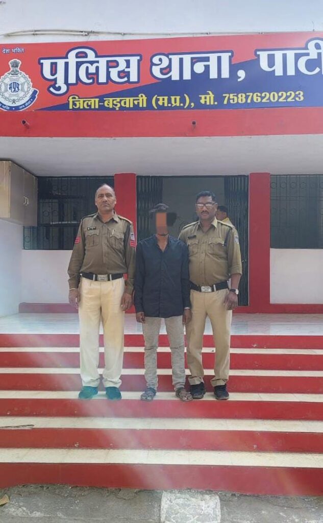मामले की गंभीरता को देखते हुए वरिष्ठ पुलिस अधीक्षक द्वारा आरोपी की शीघ्र गिरफ्तारी के निर्देश दिए गए। उक्त निर्देशों के पालन में थाना प्रभारी पाटी निरीक्षक रामदास यादव के नेतृत्व में विशेष टीम गठित कर मुखबिर तंत्र सक्रिय किया गया। मुखबिर से प्राप्त सूचना के आधार पर त्वरित घेराबंदी कर आरोपी जयसिंग पिता सावकार उर्फ उमरावसिंह बारेला उम्र 22 वर्ष निवासी ग्राम आवली को गिरफ्तार किया गया। पूछताछ में आरोपी द्वारा अपराध स्वीकार करने पर उसे माननीय न्यायालय बड़वानी में प्रस्तुत किया गया, जहां से जेल वारंट प्राप्त होने पर आरोपी को केंद्रीय जेल बड़वानी दाखिल किया गया।