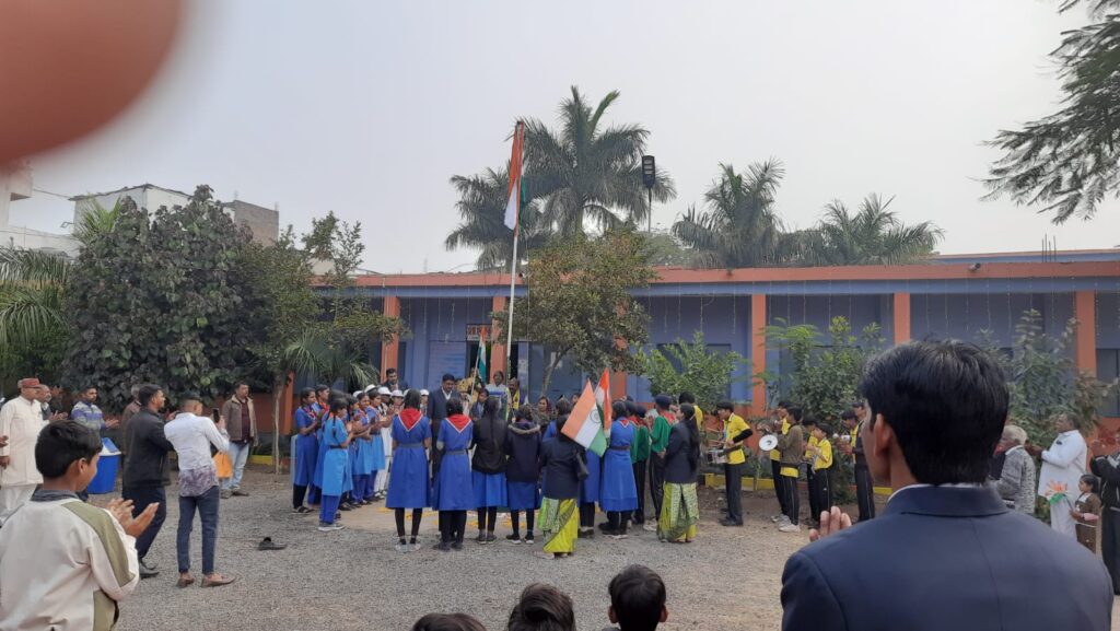 पीएम श्री हाईस्कूल में गणतंत्र दिवस धूमधाम से मनाया गया, एस आर एफ द्वारा मंच पर टीनशैड लगाकर सौगात भेंट