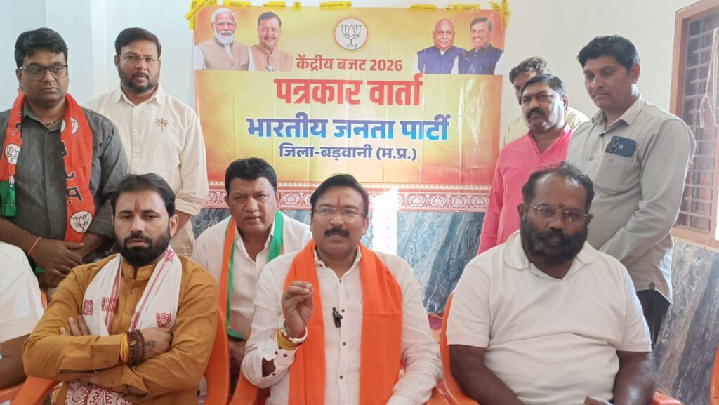 बड़वानी( नरेन्द्र गुप्ता):- खरगौन-बड़वानी लोकसभा सांसद गजेंद्र सिंह पटेल ने जिला अध्यक्ष अजय यादव की अध्यक्षता में केंद्रीय बजट 2026-27 को लेकर रविवार को राजपुर विधानसभा के शिखरधाम नांगलवाड़ी में पत्रकार- वार्ता को संबोधित किया। इस दौरान भाजपा जिला अध्यक्ष अजय यादव, अजय कानूनगो, छोटू चौधरी, धीरेंद्र सिंह दरबार, दिनेश यादव जिला मीडिया प्रभारी सुनील भावसार, मण्डल अध्यक्ष शशिकांत साहू, शैलेन्द्र भंडारकर, जि.प. सदस्य दरबार डावर विशेष रूप से उपस्थित रहे।